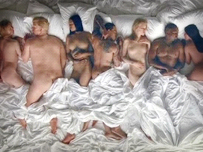 En el provocativo video se escucha de fondo la canción mientras la cámara recorre una cama donde aparecen varias personas desnudas, que se asemejan a famosos como Amber Rose, Kim Kardashian y Taylor Swift.
