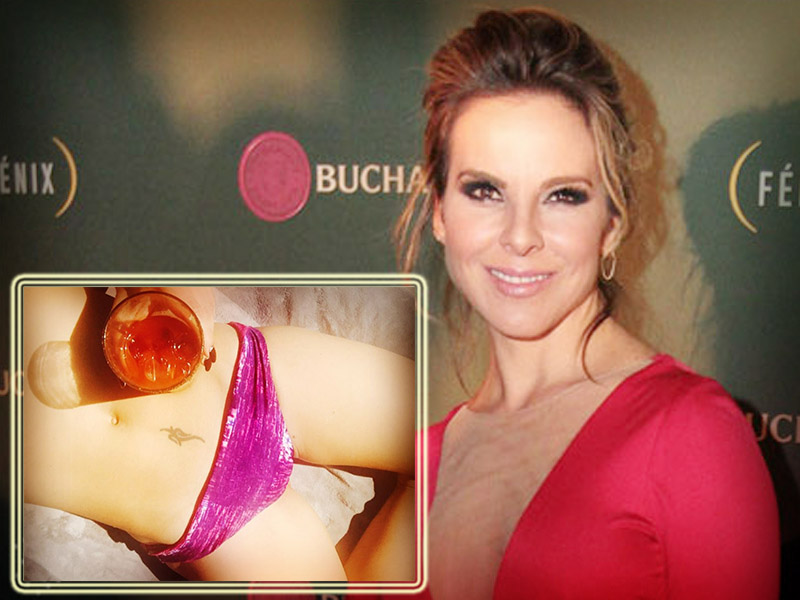 La actriz Kate del Castillo compartió una fotografía en la que presume el abdomen, un vaso con una bebida preparada con tequila y un bikini rosa.
