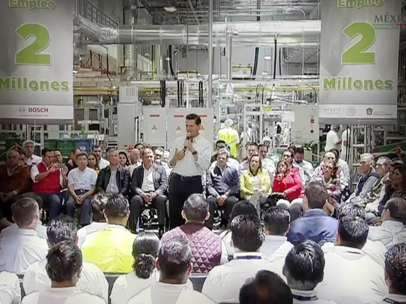 En la planta Robert Bosch en la capital del Estado de México, reconoció ese gran esfuerzo colectivo y llamó a seguir trabajando por la ruta trazada para que México crezca, tenga más inversiones productivas, logre un mayor dinamismo de la economía y genere lo más importante: más bienestar y mejor calidad de vida para todos los mexicanos.