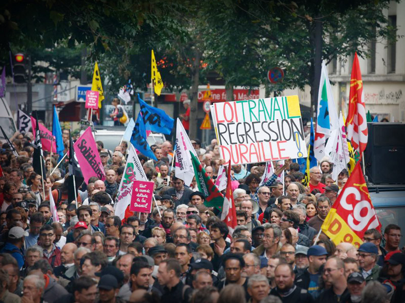 Esta jornada de huelga general en la que los principales sindicatos del país convocaron manifestaciones en 110 ciudades de toda Francia, la principal de ellas en París, es para presionar al gobierno socialista a que derogue la ley de reforma laboral, aprobada por decreto en verano.